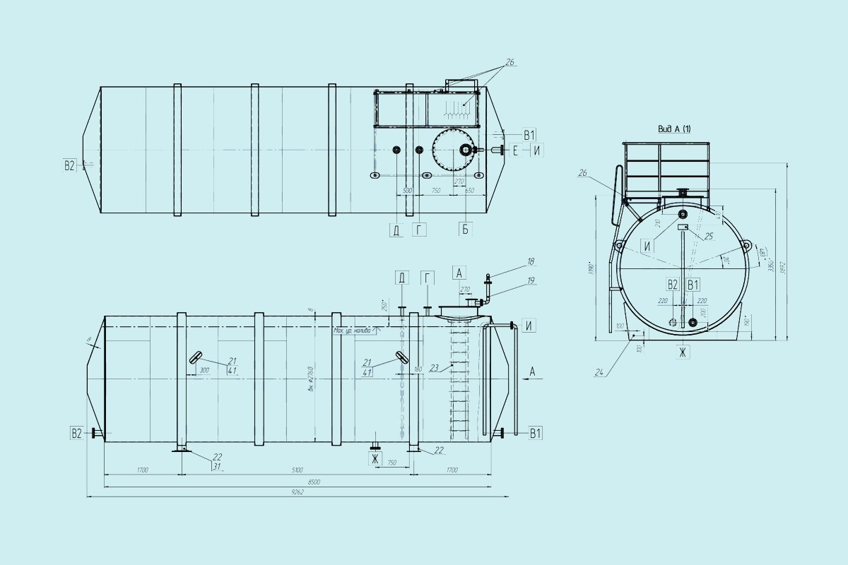• функциональные элементы (люки, штуцера, патрубки, трубопроводы, технологические площадки и лестницы) – обеспечивают качественное, безопасное обслуживание техническим персоналом.