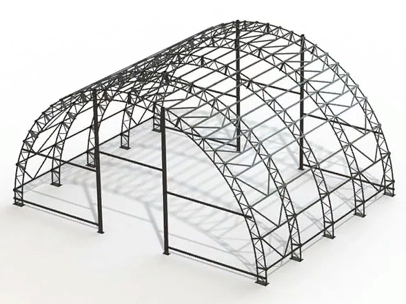 Сооружение имеет вид однопролетной конструкции, которая возводится без внутренних опор на сборно-разборном металлокаркасе. Для изготовления элементов основы используется труба и уголок из конструкционной стали. Болтовые соединения делают монтаж простым и быстрым.